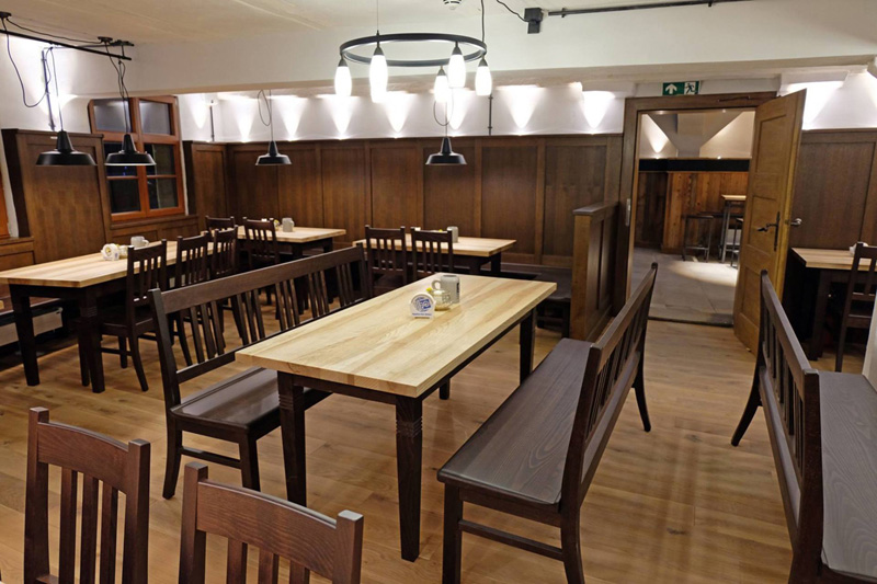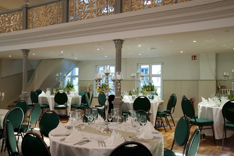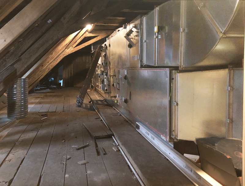 Die wechselvolle Geschichte des Traditionswirtshauses reicht bis ins Jahr 1607 zurück, gilt somit als ältestes Gasthaus der Stadt Fürth. 2014 wurde der Grüne Baum verkauft und in den Jahren 2016 bis 2019 grundlegend renoviert und umstrukturiert. Über dem rund 200 m² großen Festsaal ist eine neue Lüftungsanlage mit ca. 8500 m³/h Leistung maßgenau in den Dachboden eingebaut. Sie sorgt im Saal für ein behagliches Klima und gerade bei längeren Veranstaltungen oder Aufführungen kontinuierlich für sauerstoffreiche Luft. Hierfür sind verstellbare Auslässe für den Heiz- und Kühlkreislauf angebracht, die mit einer Raumströmungssimulation über Ansys überprüft wurden. Zur Belüftung der kleineren Speiseräume sind die Lüftungsgeräte schallentkoppelt von der Dachbodendecke ab gependelt. Dadurch werden die Ausbreitung von störenden Schwingungsgeräuschen in die Gasträume verhindern. Für die neu errichtete Küche wurde ein Lüftungsgerät in Einzelteilen im darunterliegenden Gewölbekeller errichtet. Dieses sorgt mittels der Küchenhaube für sehr gute Arbeitsbedingungen des Küchenpersonals.