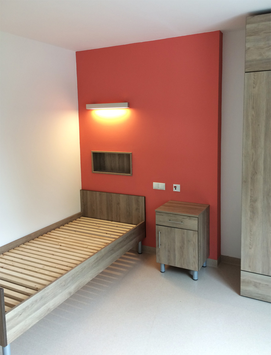 In dem idyllisch gelegenen Auernheim in der Gemeinde Treuchtlingen wurde ein Neubau mit rund 4.200 qm Nutzfläche realisiert. Die 46 Patientenzimmer auf 2 Geschossen sind barrierefrei angelegt und haben behindertengerechte Bäder und WCs. Der offene Wohn-/Essbereich wird für Therapiearbeit und Freizeit genutzt. Zur optimalen Energie- und Wärmenutzung wurden eine Gaswärmepumpe und eine moderne Entlüftungsanlage eingebaut.