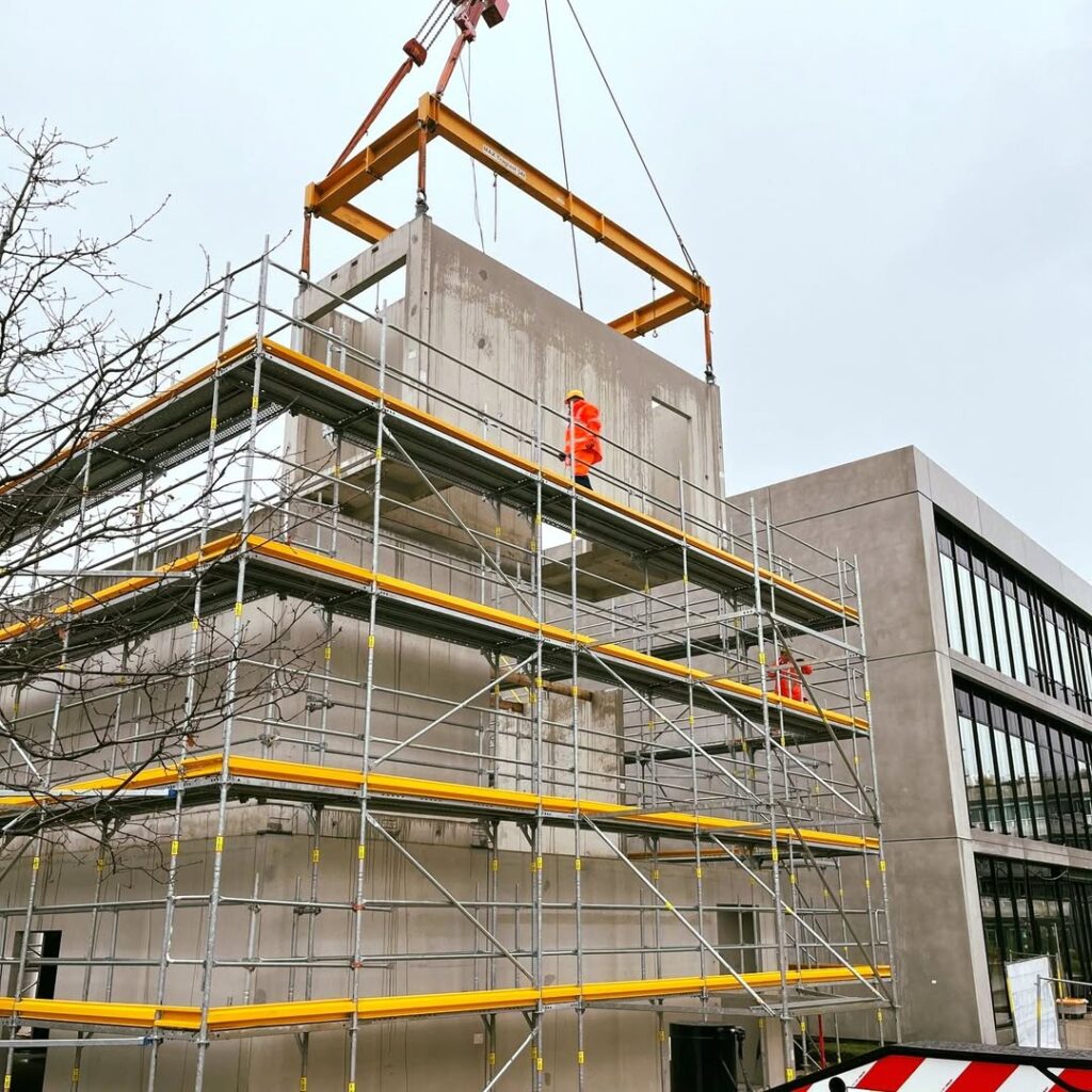 Die rund 100 m² große Laborfläche wurde aus modularen Betonfertigteilen errichtet, die vor Ort zu einer geschlossenen, hochsicheren Gebäudestruktur zusammengesetzt wurden. Dieses Baukonzept ermöglichte eine kurze Realisierungszeit bei gleichzeitig höchster Ausführungsqualität.