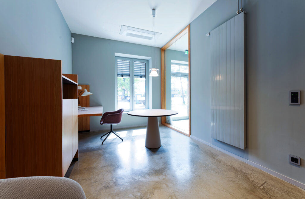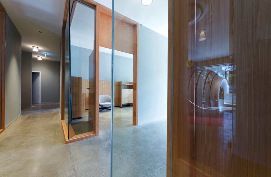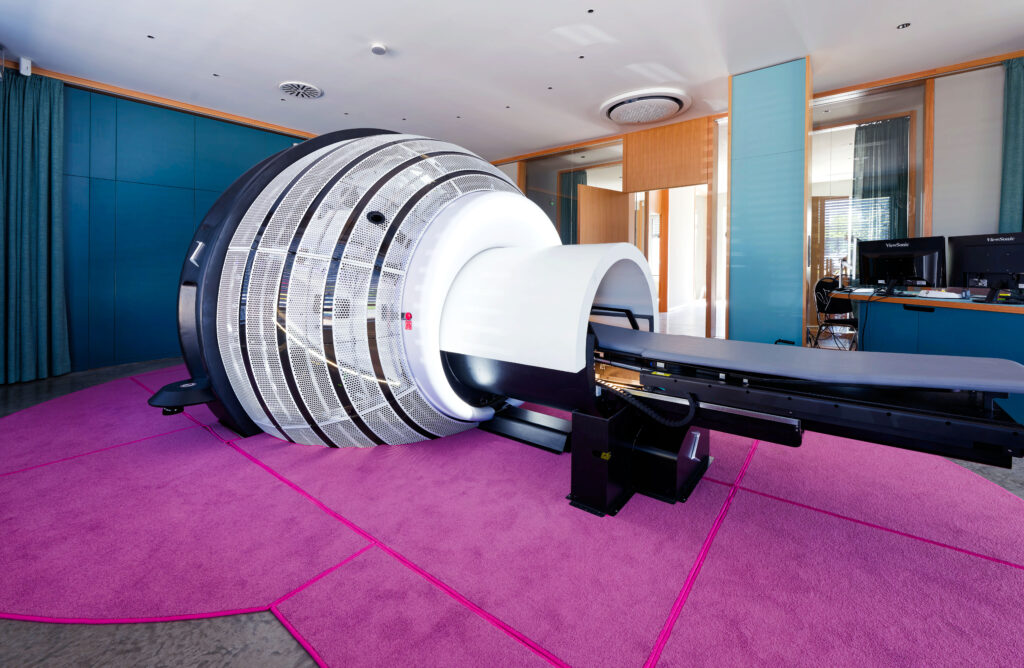 Wegen der speziellen baulichen Anforderungen ist das Gerät im Grundig-Immobilienpark untergebracht. Wir wurden für die Planung der Gebäudetechnik in den Bereichen Heizung, Lüftung, Sanitär, Kälte und Elektro beauftragt. Die ZAP-X Anlage erzeugt im Betrieb eine Abwärme von bis zu 16 kW. Um diese Wärme abzuleiten und die Praxis zu klimatisieren, wurde eine Kälteanlage mit 42 kW auf dem Dach installiert. Außerdem sorgt eine auf dem Dach platzierte Lüftungsanlage mit Entfeuchtungsfunktion dafür, dass die ZAP-X Anlage vor hoher Raumluftfeuchte geschützt ist.